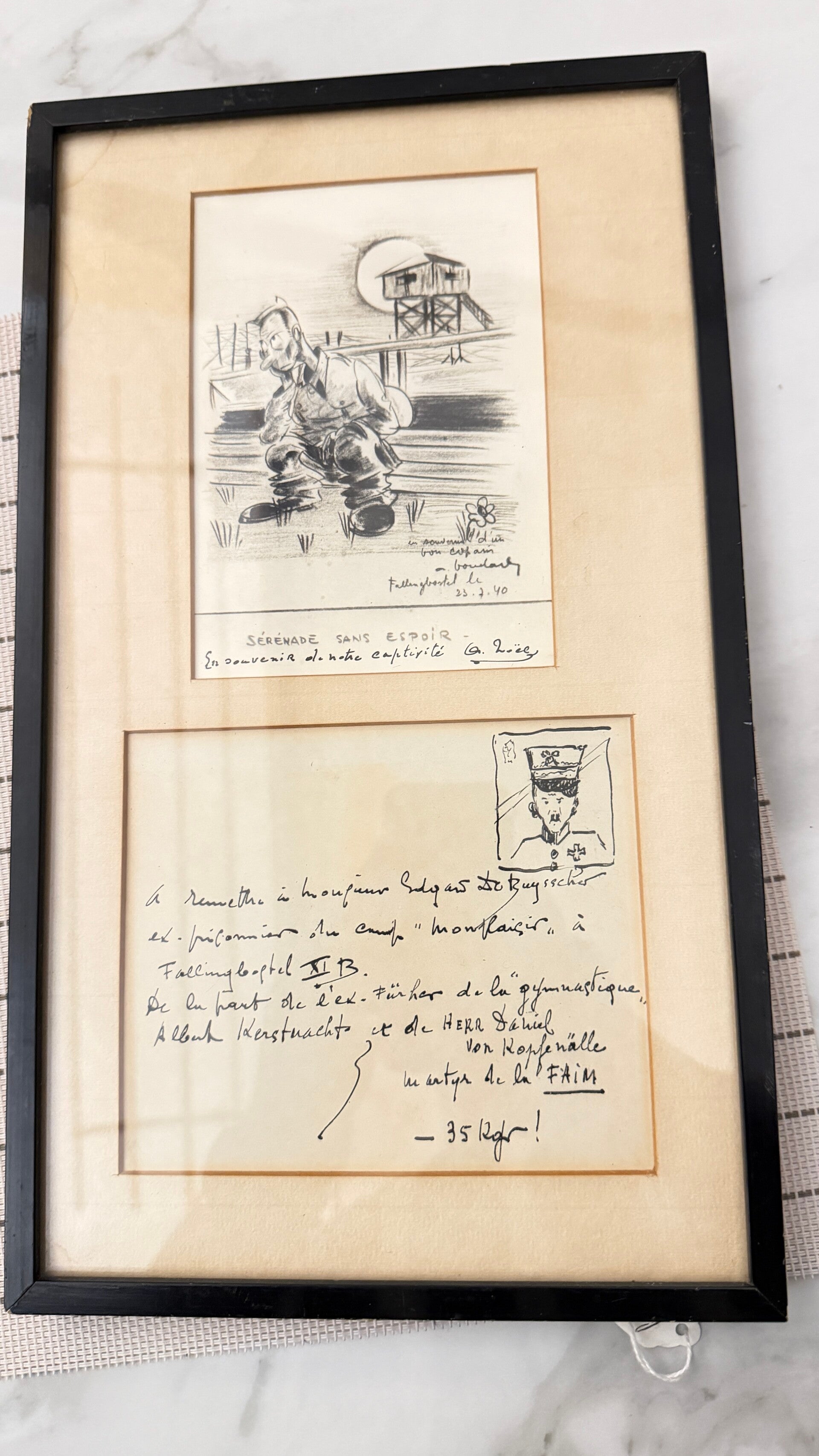 World War II prisoner of war (POW) drawings - dated February 23, 1940, With the title "SÉRÉNADE SANS ESPOIR" (Serenade Without Hope)